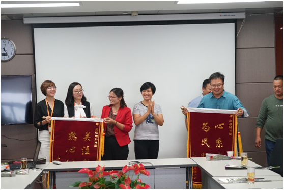 會議的最后,楊校長代表唐學(xué)元希望小學(xué)為美盛地產(chǎn)集團(tuán)送上了一面錦旗,感謝美盛對學(xué)校的愛心付出