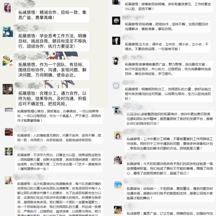 各項(xiàng)挑戰(zhàn)過后,大家都積極進(jìn)行分享總結(jié),討論個人與小組的成敗原因,通過游戲反思工作與生活;付出有多少,收獲便會有多少,在日后的工作中,以結(jié)果為導(dǎo)向,為了目標(biāo)找方法,不找借口,發(fā)揮團(tuán)隊(duì)的力量,凝心聚力,決戰(zhàn)未來!