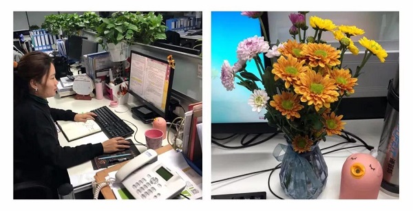 辦公桌上恰到好處的一束花兒