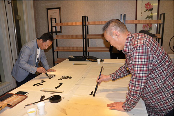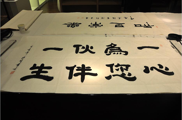 有幸請到中國當代著名毛體書法家、國禮藝術(shù)家楊新平先生以及河南省書法協(xié)會會員、河南硬筆書法家協(xié)會會員、許昌市東城區(qū)弘圣美術(shù)館名譽館長劉振侖先生為我們現(xiàn)場題字,兩位大書法家現(xiàn)場揮毫潑墨,為儀式增添濃重的文化氣息。