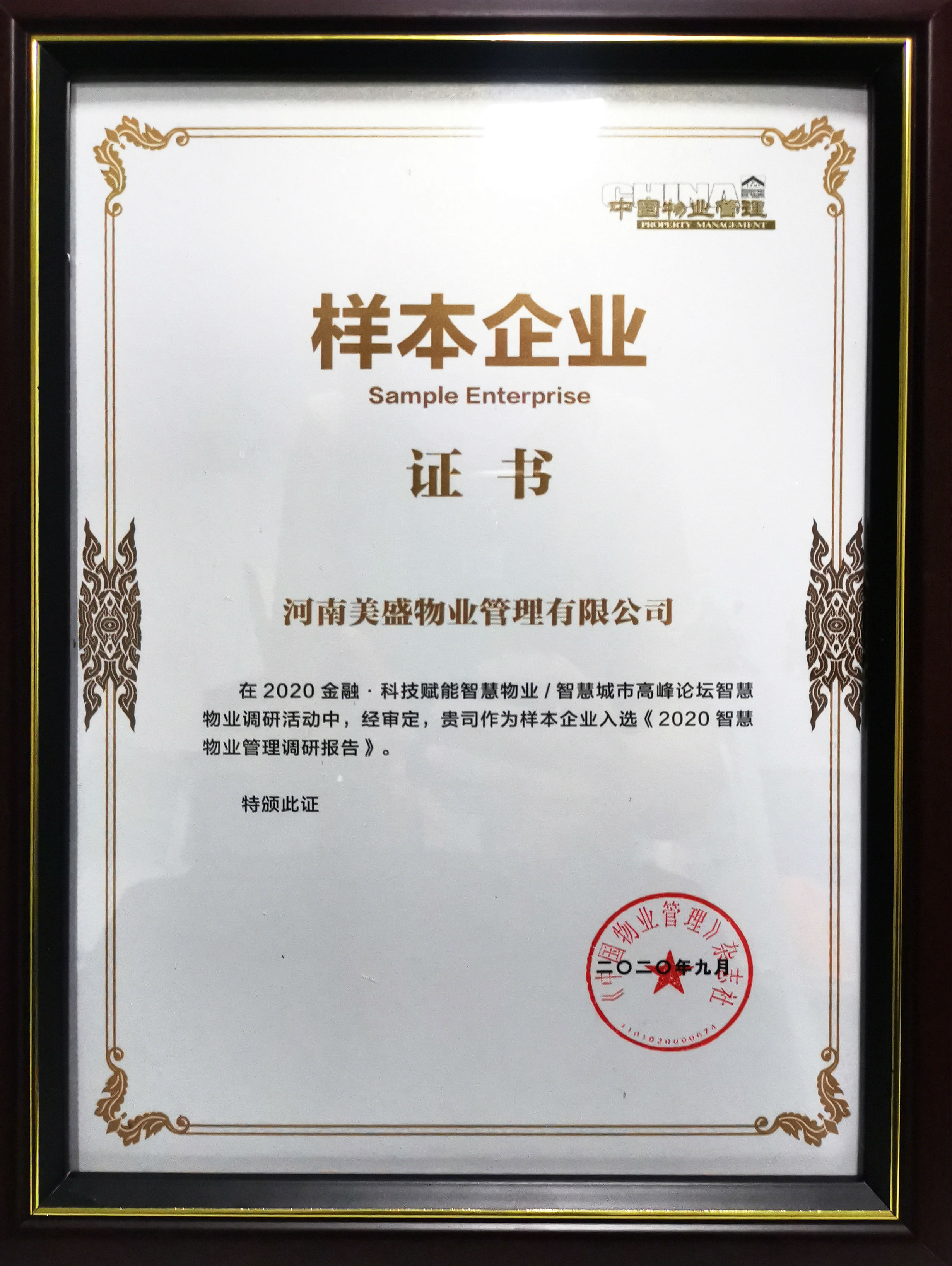 9月11日,會上現場發布了《2020智慧物業管理調研報告》,美盛物業憑借“精致美好生活——高端生活價值服務體系,通過智慧與服務的結合,打造社區生活生態圈的全新格局”,榮獲“智慧物業樣本企業”獎項,并入選2020智慧物業管理優秀企業案例。