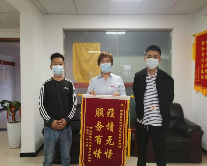 扛過(guò)鄭州最艱難的時(shí)期,一面遲來(lái)的錦旗,滿(mǎn)載沉甸甸的榮譽(yù)來(lái)到徐莊物業(yè)服務(wù)中心,沒(méi)有過(guò)多華麗的語(yǔ)言,只有兩行大字“疫情無(wú)情,服務(wù)有情”。管家李森莉這么久的默默付出,得到業(yè)戶(hù)由衷的認(rèn)可,作為一名物業(yè)人,被日常這碎了一地雞毛事務(wù)圍繞的她,這一刻一定是幸福的。業(yè)戶(hù)的理解和認(rèn)可,彌足珍貴。